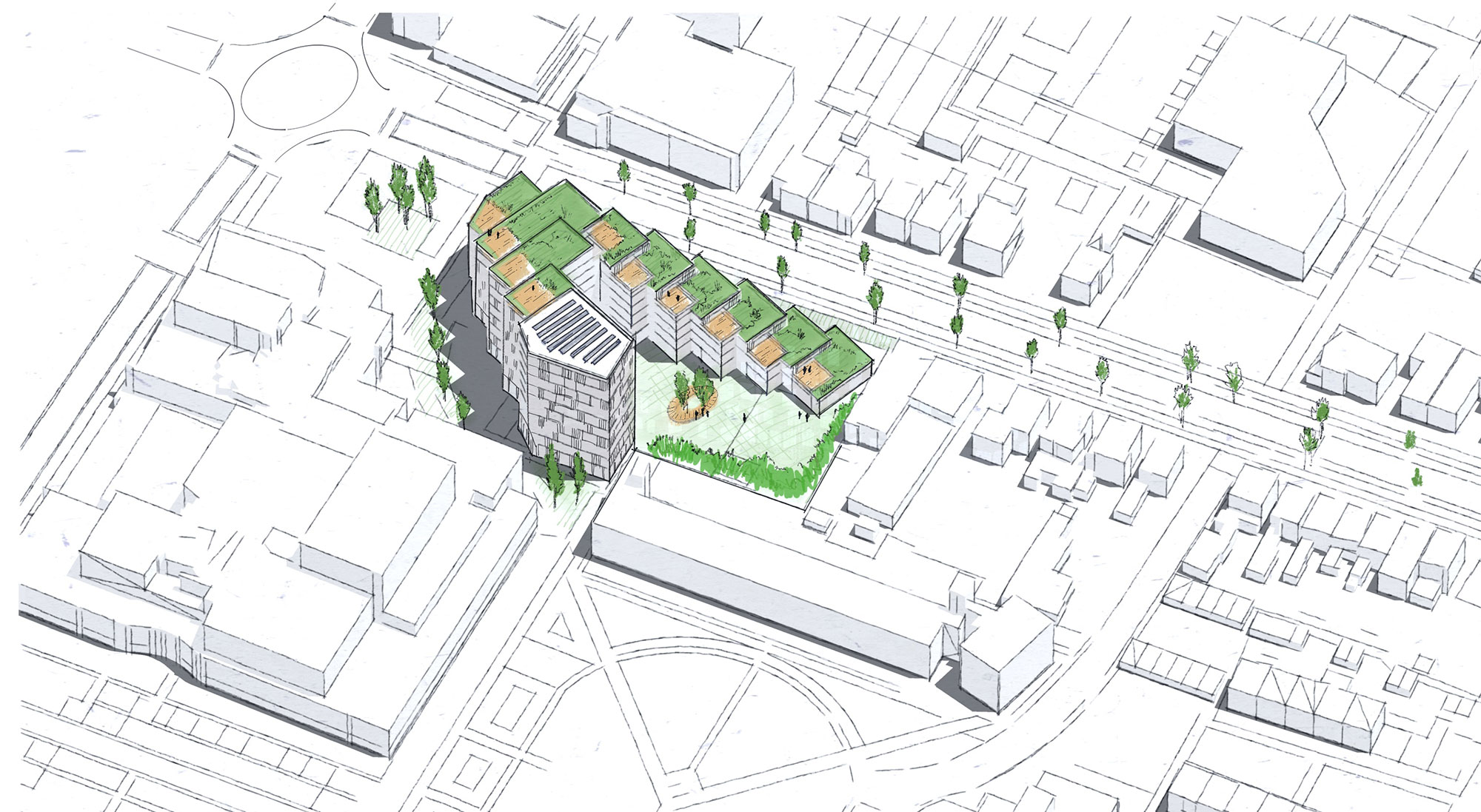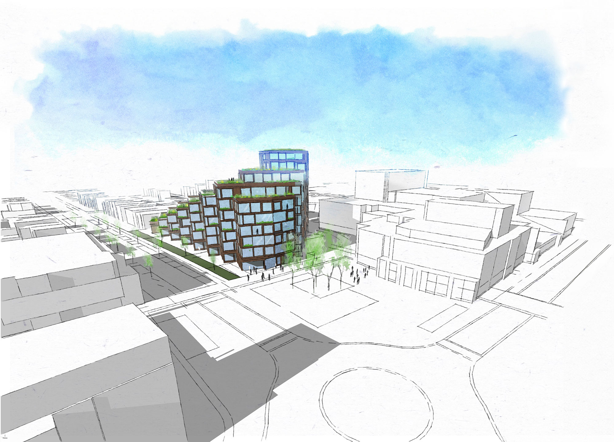 Het nieuw te realiseren pand De Burgemeester kenmerkt zich door een trapsgewijze V-vormige opbouw, groene daken en een frisse uitstraling. De Burgemeester biedt ruimte aan horeca (restaurant) en kantoren in de plint van het gebouw, en 46 luxe appartementen verdeeld over de acht à negen bouwlagen daarboven. De achterzijde van het pand, aan het Kiryat Onoplein, biedt ruimte voor nog nader te ontwikkelen functies.